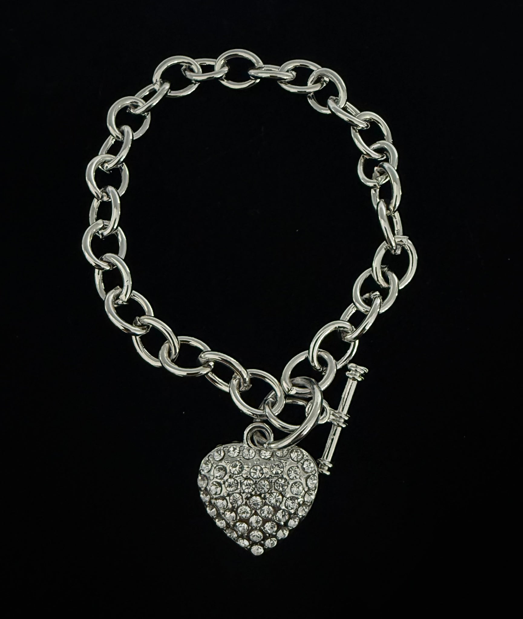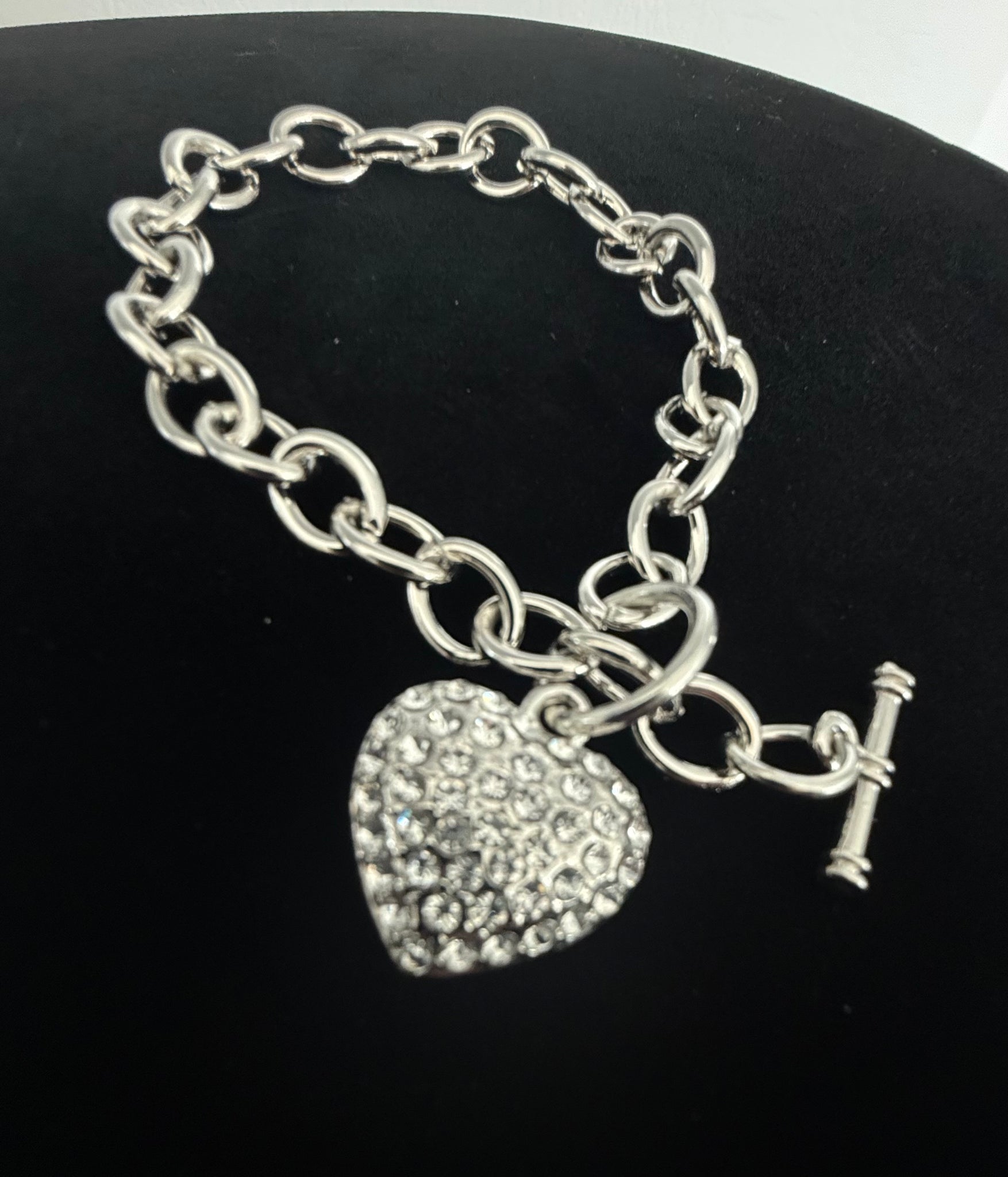 Beautiful Sterling Silver plated Heart toggle bracelet.